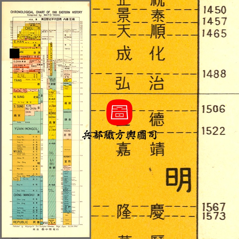 JPG中日韩三国历代王朝历史年表高清示意图 7000x18000