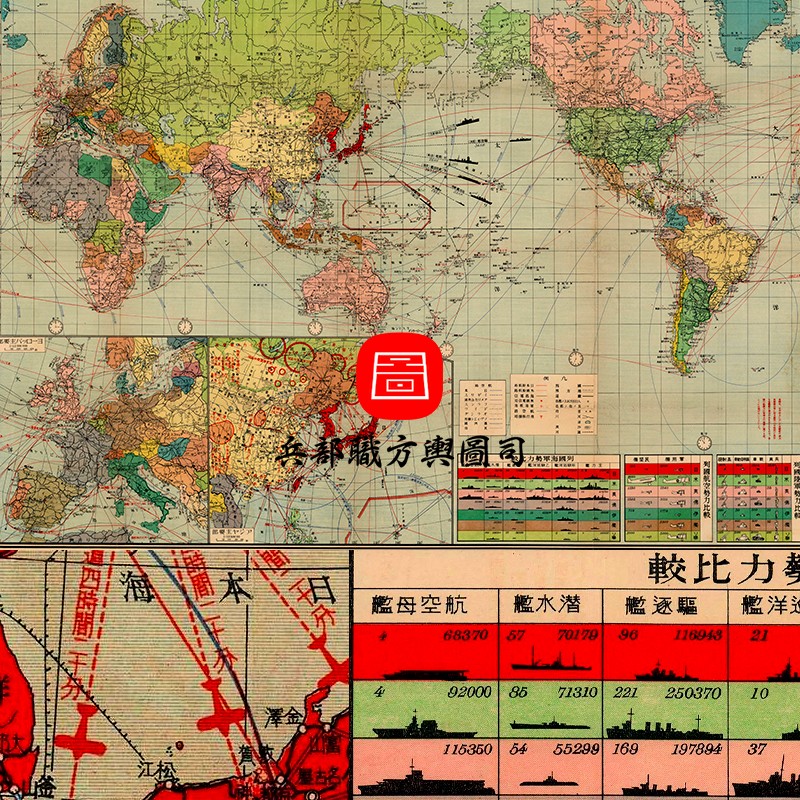 【舆图司】日绘世界主要大国海陆空军事力量对比示意图(1937年)