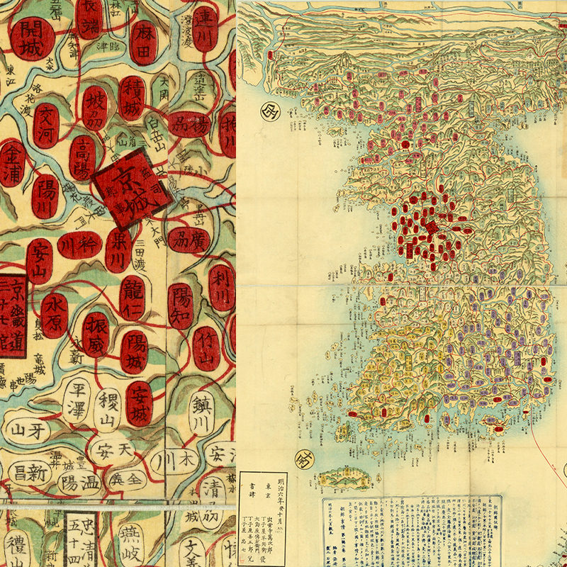 【舆图】日绘殖民前李氏朝鲜半岛详细示意图(明治6年)