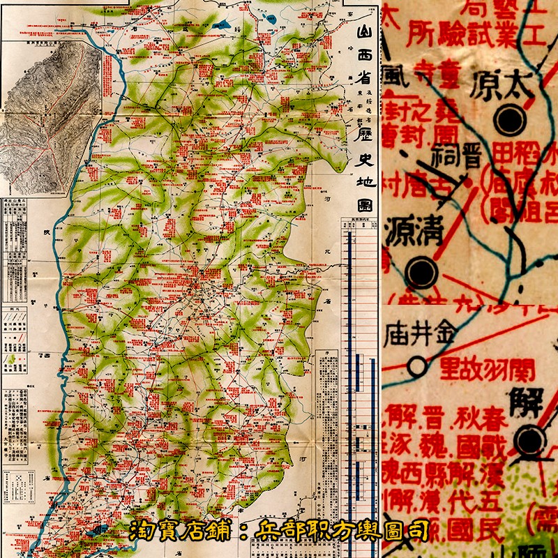 【舆图】日本绘山西历史遗迹沿革名声古迹高清全图(1931年绘制)