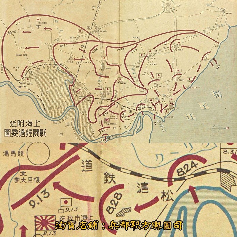 【舆图】JPG日寇侵华沪淞会战进程示意高清经过要图 尺寸约为5900x3700