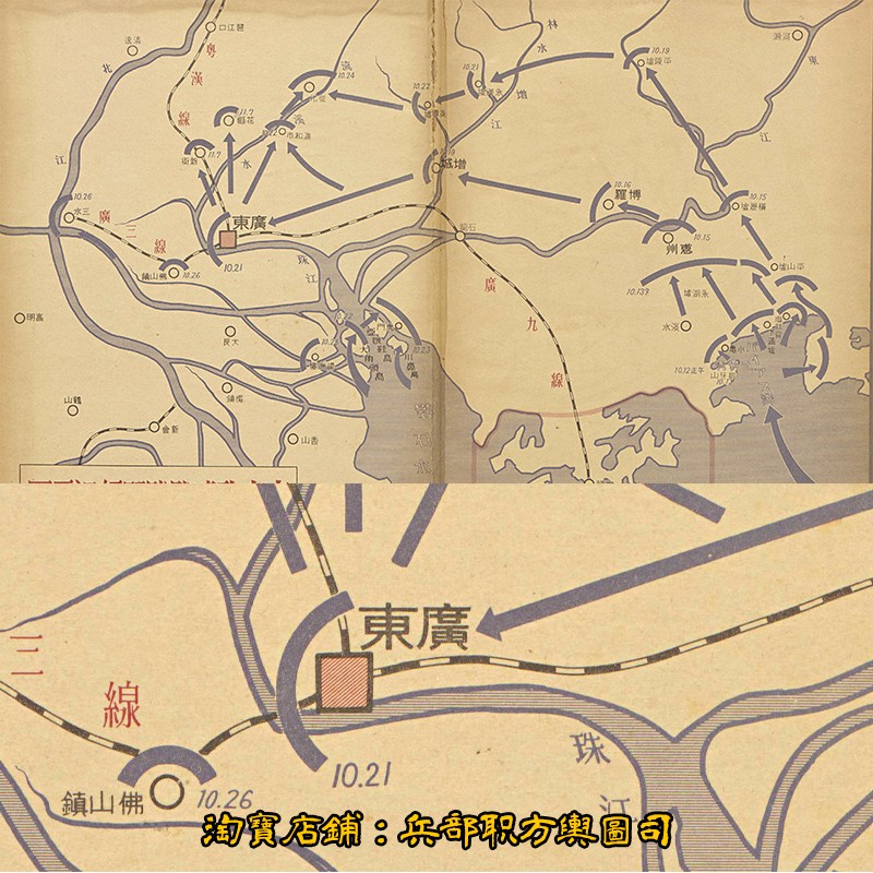 【舆图】JPG日寇侵华侵占广东作战进程高清示意图 尺寸约5800x3700