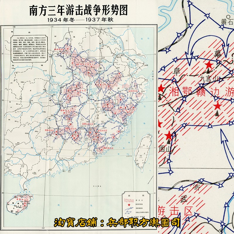 JPG南方三年游击战争形势图 革命历史挂图 高清装饰画素材