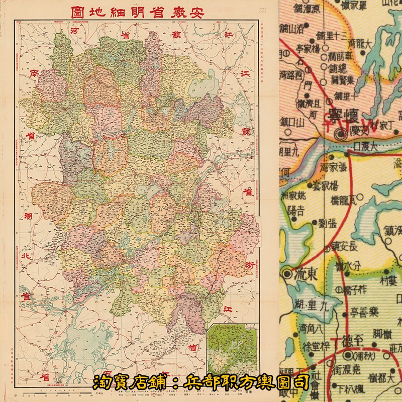 民国抗战时期1938年安徽省明细地图 高清电子版老地图