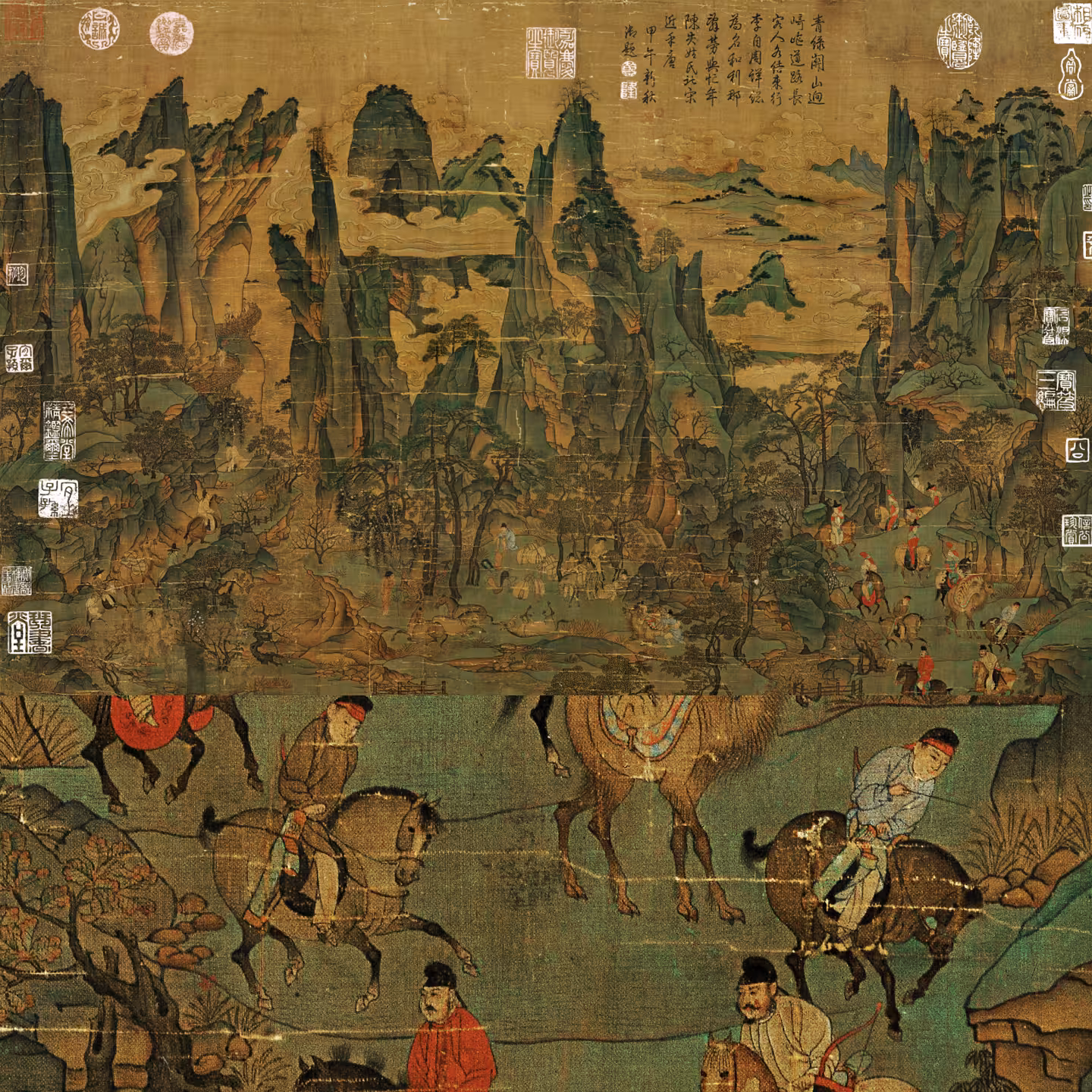 长江万里图卷.元.王蒙绘.纸本设色.高清电子图片