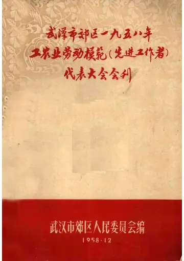 1958.12年版武汉市郊区一九五八年工农业劳动模范(先进工作者)代表大会会刊.pdf